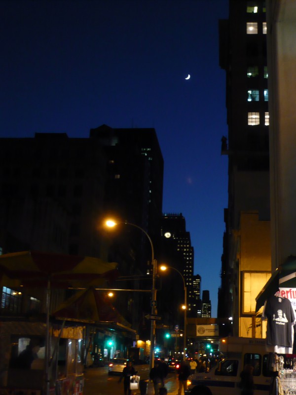 翻って、時は真冬。ハウストン・ストリート駅でNラインを降りてチャイナ・タウンに向かう道でふと右手に目を遣ると、宵闇迫る南の空に上弦の月がぽっかりと浮かんでいた。
