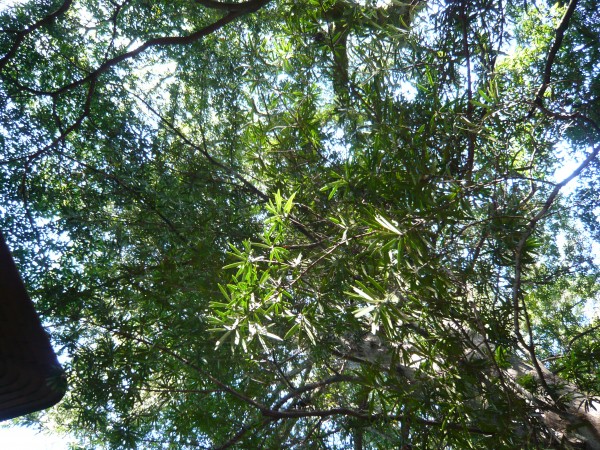 ヨーロッパでは自生するオリーブの木を普通によく見ることがある。ふと足元に目を遣ると、そのオリーブによく似た小ぶりの実が沢山落ちている。ひとつ取り上げて爪で傷つけてみると、じんわりと脂のようなものが滲んでくる。常緑の葉を見ると、細長い卵型をしているので、これはてっきりオリーブだと思い込んでしまった。樹齢は400年と銘板は言う。それこそ種子島に鉄砲とともにもたらされたものだろうか。しかし、何故関東のこんな山の頂きに?