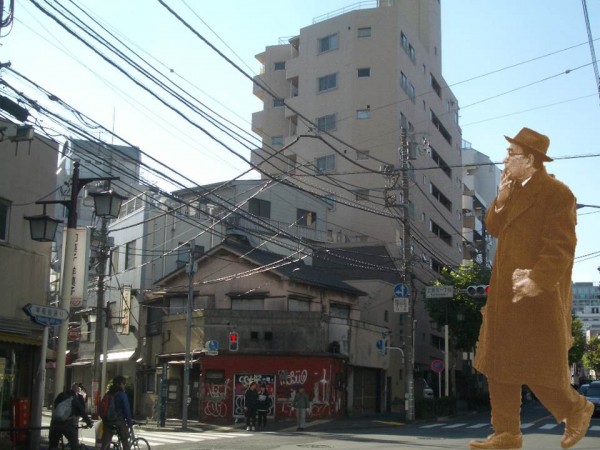 再び朝の連ドラの枕で恐縮だが、『梅ちゃん先生』のタイトルのジオラマ制作を手掛けた山本高樹氏の作品展を過日、日本橋高島屋に見に行った。下町情緒溢れる時代と土地を題材に街の情景を再現したジオラマは、観ることよりも寧ろ創ることの楽しみを想像させるが、ひとつの驚きは、ジオラマに配された小さなフィギュアの群衆の中に、山本氏が必ず、小さなバッグを手に提げた永井荷風の姿を一体、紛れ込ませていたことだった。時代と場所は問わず、いずれの作品にも荷風が登場する。山本氏の生み出すノスタルジックな世界観にとって荷風はきっと不可欠な人物なのであろう。