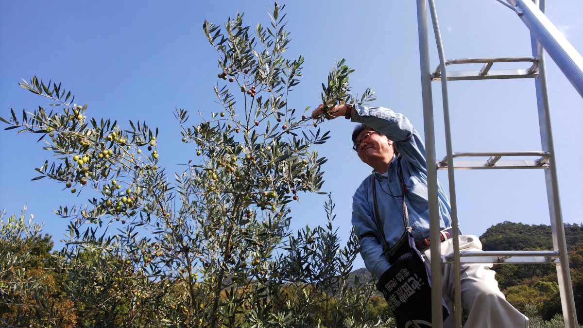 その畑は土庄港と池田港の中間、瀬戸内海越しに遠く高松を望む南向きの丘の中腹にある。既に林と化してしまった休耕地の段々畑をTさんがコツコツと開墾しながらオリーブの苗を植えていった。大きく三段に分かれた畑を下から順番に開墾していき、3年物の苗を植えたオリーブも下段では既に樹齢6、7年の7メートルを超える大木に育った。Tさんは本業の傍らオリーブ育成に関わる研究を重ね、土地改良を加え施肥を行いその収穫量が年々増えていく有様は、手にとるように分かる。更に、本業のIT技術を使って地中・地表温、湿度、雨量、日照などを計測してオリーブ収穫に必要な気象データの収集にも余念がない。