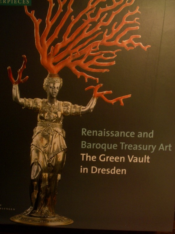 何故ならば、ドレスデンには、Gruenes Gewoelbe (グリューネス・ゲヴェルゲ:「緑の天井」)という素晴らしい手工芸品美術館があるからだ。これは前回ご紹介したザクセン公アルブレヒト以降の芸術政策の結果、ドレスデンに集めた職人達に造らせ、あるいは蒐集した手工芸品を、その子孫であるアウグスト強力王が宮廷の一部に財宝館として展示したことに始まる。その部屋の一部の天井が緑色に塗られていたためにこの名がつけられた。