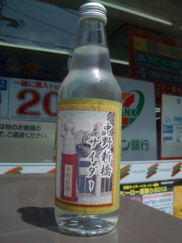 川上りを小休止し、古い街並みを求めて散策を考えたが、余りの暑さに清涼飲料を求めコンビニに飛び込む。硝子張りのクーラーを見回していると、ふと目に止まったのが「中野新橋サイダー」である。もしや、と思って手に取って瓶の裏の製造者を見ると、案の定「東京飲料合資会社(トーイン)」であった。先日、桜の日録でご紹介した「中野のホッピー」ともいえる「ハイ辛」(ジンジャー系の炭酸水)を製造している新井薬師の地場メーカーである。現在では赤提灯といえばホッピーだが、このメーカーもラムネ製造に始まり様々な種類の「割炭酸」を製造していて、中野北口の古い暖簾では根強い人気を保っている。今度一度本社を訪ねてみたい、と思っている。