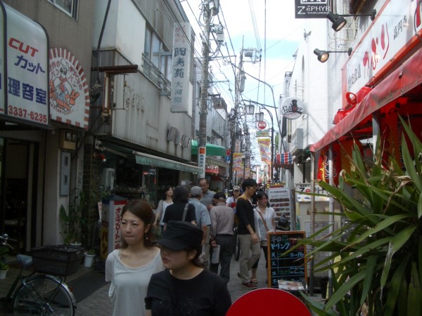 そんな、歴史の記載を思い起こしながら、軍用道路を馬橋公園へと向かう。環状7号線で道路は一旦寸断されるが、その先も、すっと背筋を伸ばしたまま西へと続いている。やがて高円寺北に差し掛かると、あづま通り商店街、庚申通り商店街と、高円寺駅の北に延びるいくつかの商店街を縦断することになる。軍用道路を右に折れて商店街を暫し散策してみると、昔の建物を活用した洒落た雑貨屋、レストラン、喫茶店が並び、古い街並みを活かした商店街の再生が図られている。豆腐屋さんも元気だし、魚屋さんは居酒屋を併設して頑張っている。高円寺らしい趣のある商店街の休日に、集う人々の表情もどこか軽やかだ。