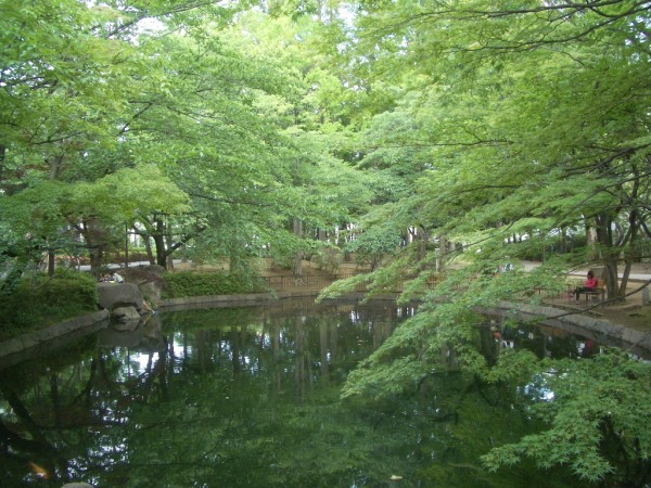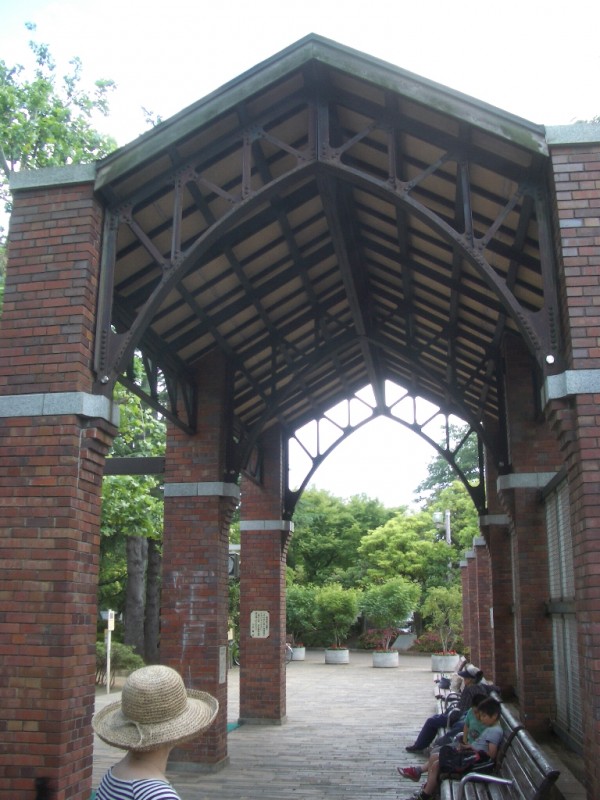 さて、喫茶店で、汗となった水分を補給しながら休息し、改めて馬橋公園へ向けて軍用道路を歩く。やがて緑の杜が見えてくると御影石に「馬橋公園」と彫られた入口の前に出る。公園には広大な池があり、これを覆うように新緑の灌木が林立している。都会とは思えない静寂な日本庭園である。庭園をつっきると石造りの親水公園を水が流れ、近所の子供達が水遊びに興じる、涼しげな風景に巡り合える。ふと、西側の出口に近いところに錆びた鉄骨の構造を持つ屋根の一部が残されているのが、唯一、ここが昔、軍用施設であったことを偲ばせる。