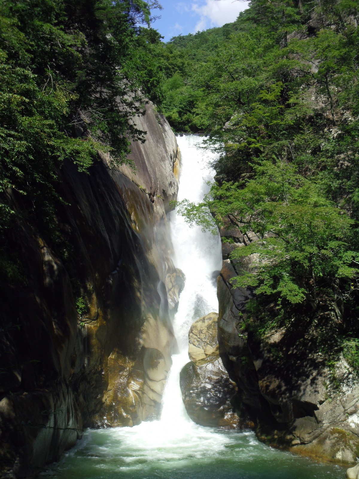 仙娥滝に近付くにつれ、道は険しく谷深くなって花崗岩が道を覆うようになる。天保14(1843)年に、長田圓右衛門が十年の歳月をかけてこの岩道を開鑿し滝に至る道を拓いた、と石碑にある。この男の一途な努力も昇仙峡の更に奥にある金剛山に至る修験道の信仰心の賜物であったのだろう。ふと躓いた二十代はこうして 『恩讐の彼方へ』 を想い、萎えた心の支えを得たものだった。