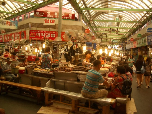 これは韓国人の一種の合理主義なのかもしれない。あるいは街づくりの潜在的ポリシーともいうべきか。街の市場は太い線となって延びていき面となり拡大していく。再開発のためにこの市場のDNAを遮断してビルを建てようとしたら、凄まじい反対運動が起きて、建てられたビルの一階の通路がそのまま市場になってしまった、という逸話まで残っている。