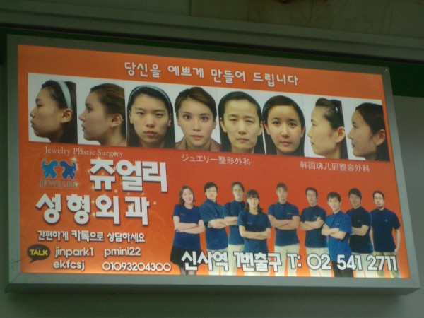 地下鉄で何気なく目にした広告。整形外科の施術前・施術後の顔写真広告に釘づけになってしまった。韓国では整形は常識というけれど、これほどまでに抜本的な「改築」を行うとは。いや、これは殆ど「新築」としっていいかもしれない。